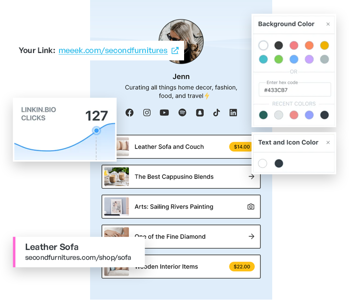 Simple, Powerful and Customizable Meeek's Link in Bio Tool